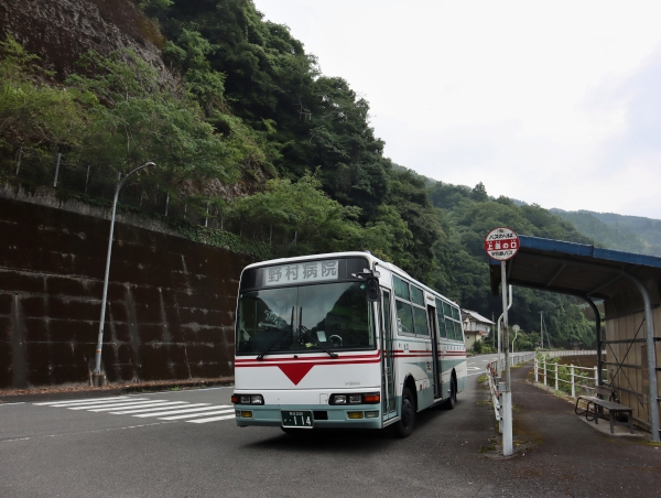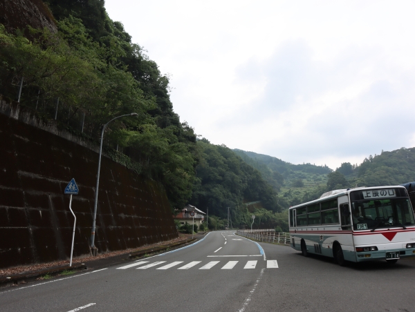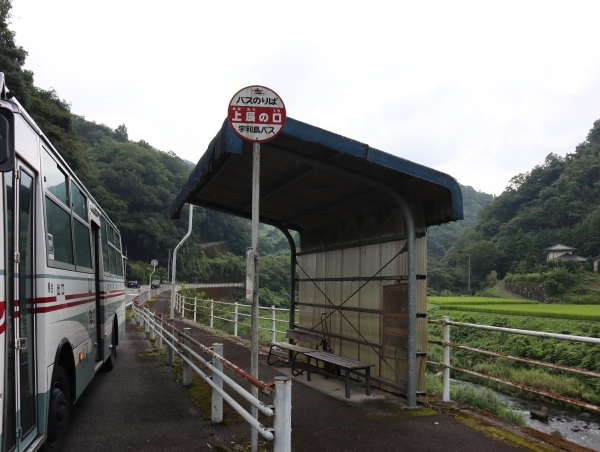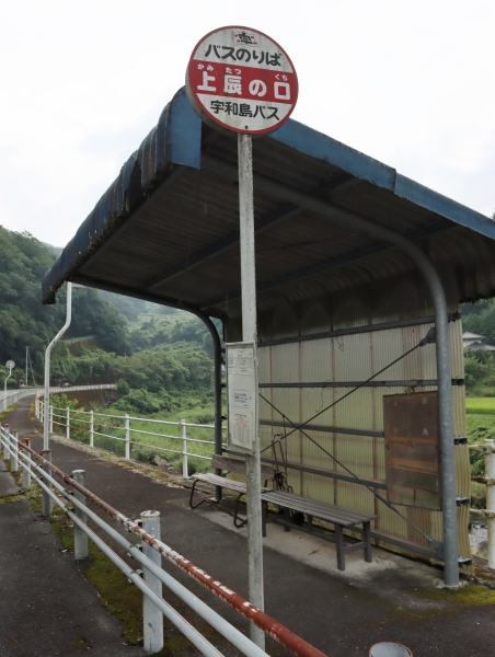 惣川地区生活交通バスとの接続がある河成から更に進み、黒瀬川沿いの国道197号線上に終点上辰の口のバス停があります。集落とは少々離れたところにバス停があり、到着したバスはそのまましばらく回送し、かつての吉野沢口バス停付近の路上で転回、戻ってきてバス停前で待機します。元々は国鉄バス南予線の経路上でしたが、宇和島バス移管後一旦の路線廃止を経て野村−大成線の短縮時に宇和島バスの終点として復活しています。