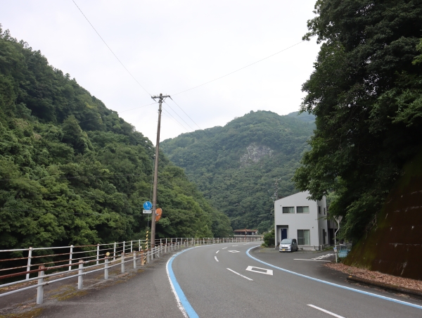坂石付近。風情ある集落内を行きます。鹿野川ダムにより移転した集落です。