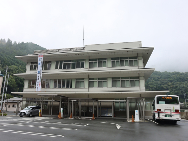 大洲市肱川地区複合公共施設。元々肱川町役場、のちの大洲市肱川支所がありましたが、2018年7月上旬の西日本豪雨で浸水し、複合施設として2023年に建て替えられています。肱川支所のほか図書館、保健センターなどが集約されています。