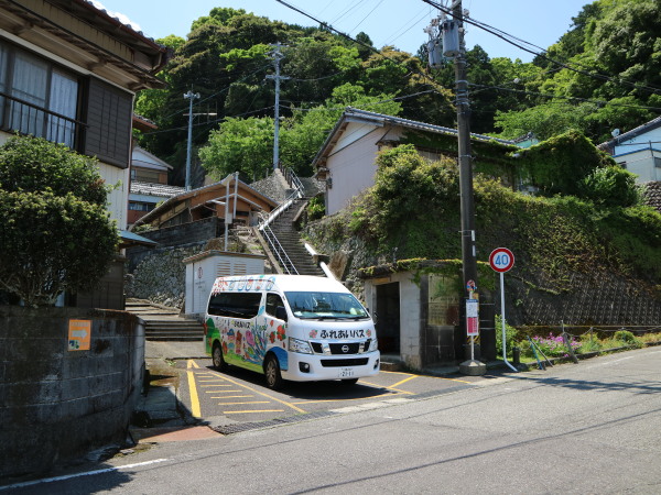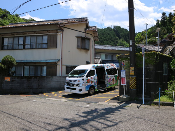 尾鷲湾に沿った県道をしばらく走り、行野浦集落の入口に終点の紀伊松本があります。狭い折返場所が山側に設けられており、小さなバスはここで待機します。
