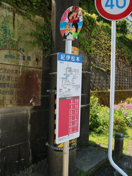 尾鷲市ふれあいバス用のポール。本数は多くないものの一定が確保されています。