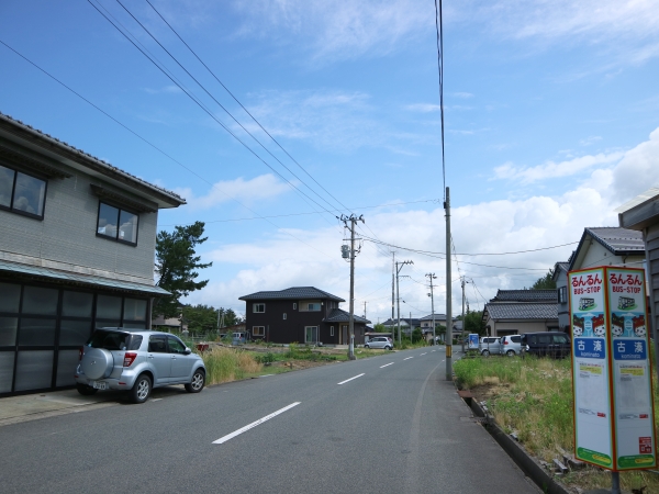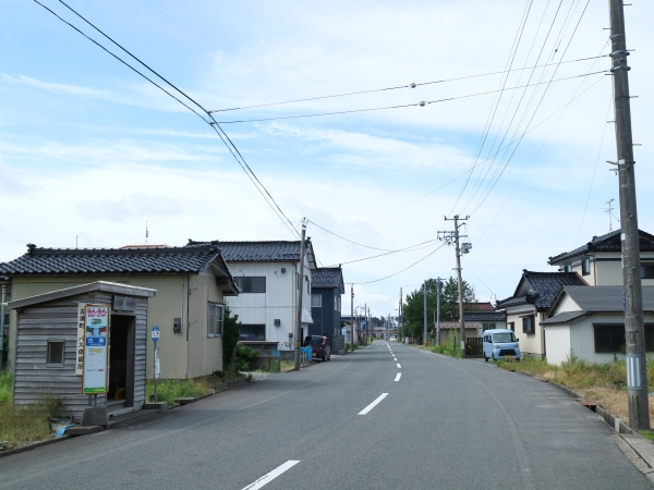 2車線の市道上に位置しています。周辺は住宅地で、海沿いには防風林を超えれば酒田港、山手には工業団地が広がりますがそういった雰囲気は感じられません。