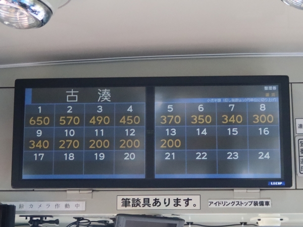 (左:乗車時の車両・右:運賃表)