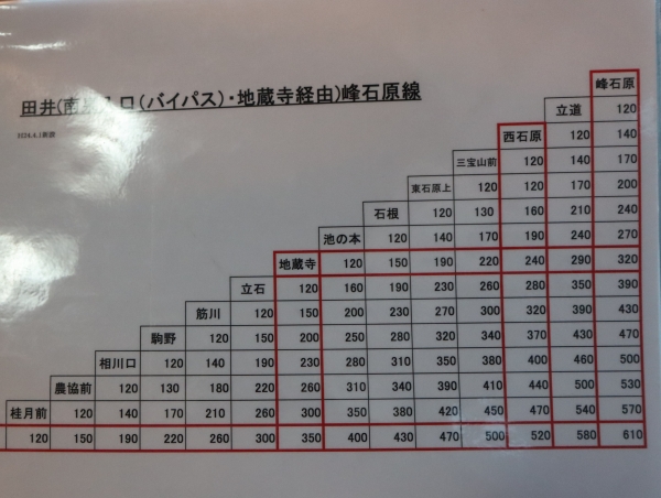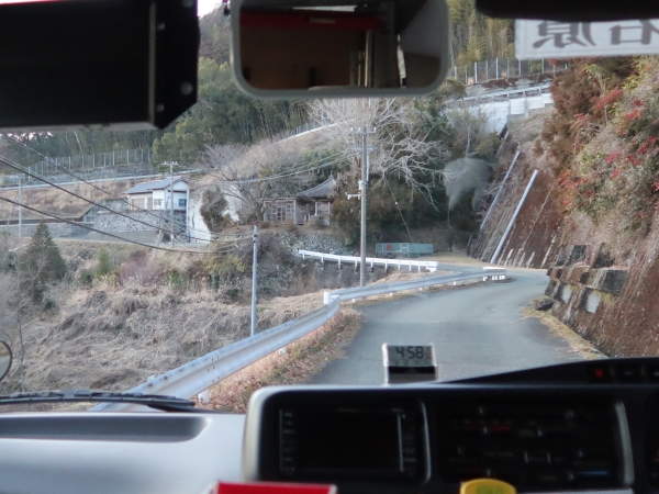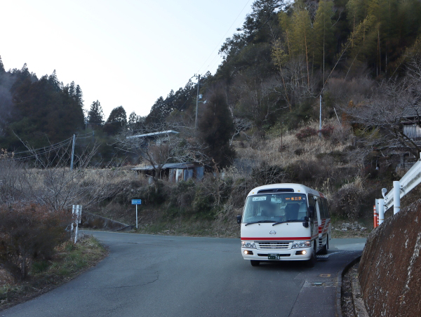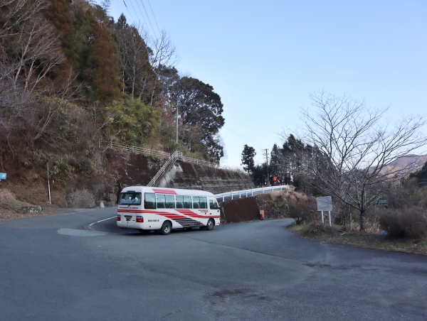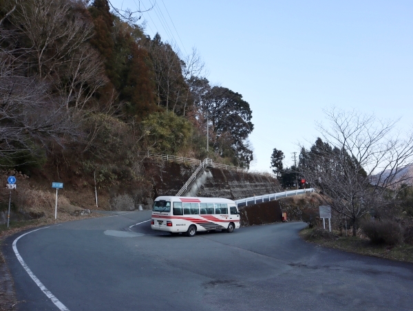 田井自体が結構奥地。そこから走る路線は狭隘なのかなと密かに楽しみにしていたものの、2車線の国道を割と淡々と走ります。西石原手前では旧道区間もありますがまあ普通の道。山の風景がいいなぁなどと思っていると西石原からバスが入るとは思えないような道に。ほんの数分で一気に高度を上げ峰石原へ。山かげの静かな終点でした。[2024/02]