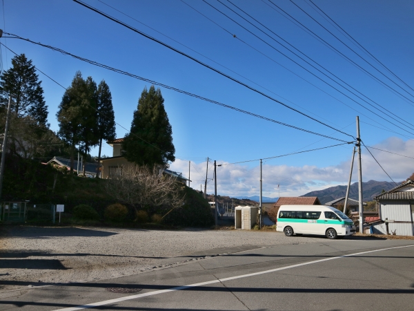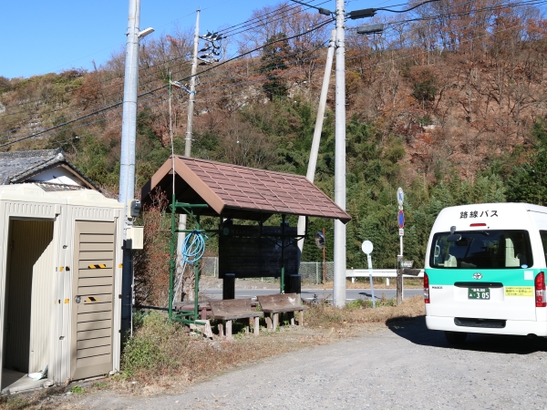 折返場所。ハイエースには広い折返場所があります。簡易トイレや待合所、関東ふれあいの道の案内板が設置されていました。