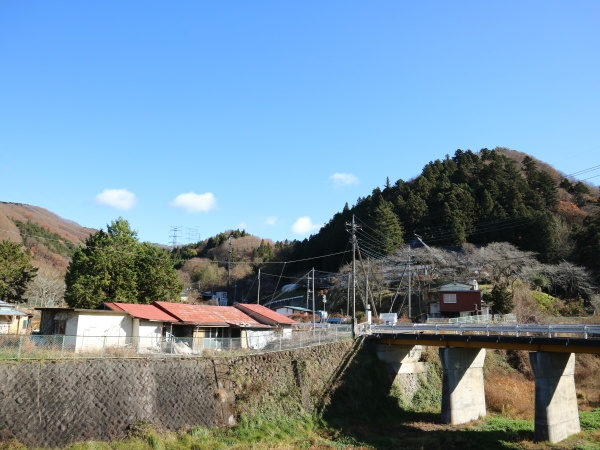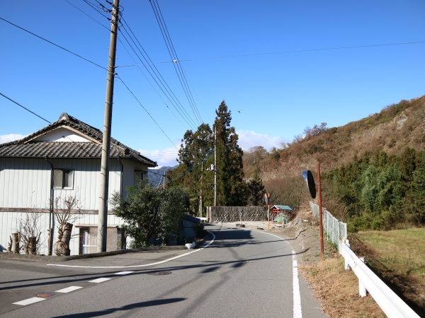 川向いにもわずかに家々があります。川にはほとんど水がないのですがこれが標準のようです。鈴ヶ岳の麓、鈴ヶ池方面に県道が続いています。