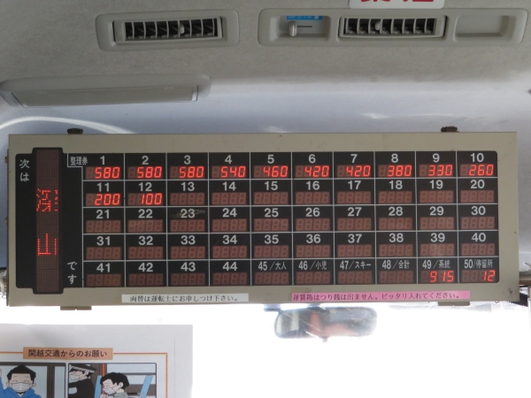 乗車したのハイエース。渋川市の委託バスの一部はハイエースのよう。運賃は始発の渋川駅から580円です。