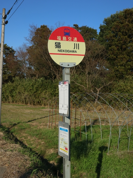 「伊達経由」は国道4号を延々北進する路線。訪問時は伊達橋通行止めのため大きく迂回するルート。上ヶ戸経由掛田のルートを通り、北福島医療センターへ。ここ折返しの便もあります。保原の街なかを抜け猫川へ。なぜここが終点なのか非常に気になる終点なのでした。[23/04]