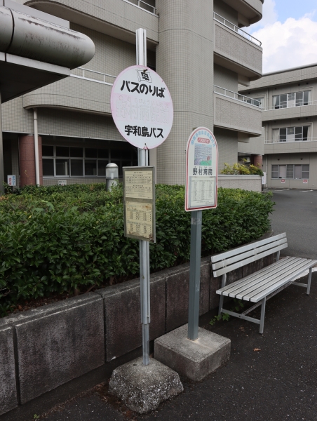 西予市立野村病院の正面にバス停があり、到着したバスは野村出張所との間を回送します。