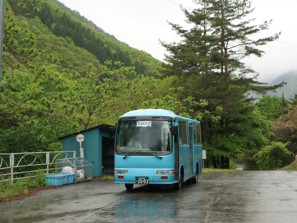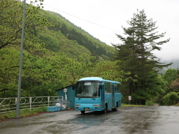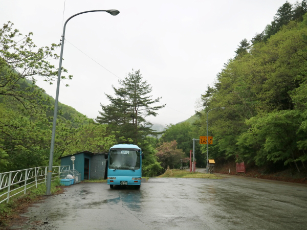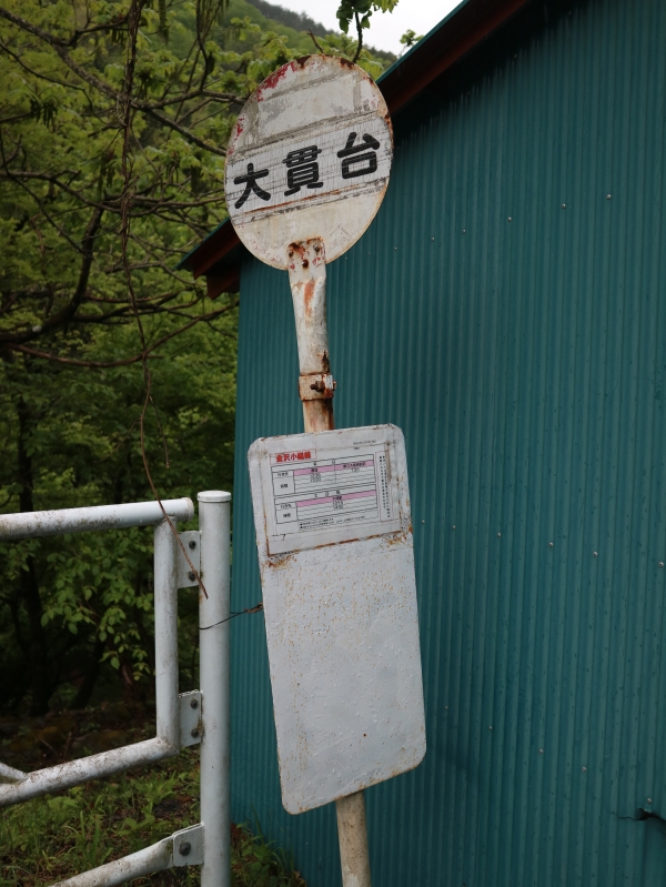 どこからか持ってきたもの。県交通時代は手前の小又口までだったと思われ、小又口から先のポールは置かれていないのですが、大貫台だけ設置されています。平日2.5往復、土日祝日2往復の運行です。