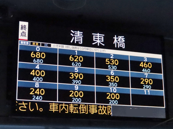 乗車したのはノンステレインボー。奥多摩といえばの車両。運賃は始発の奥多摩駅から現金680円でした。