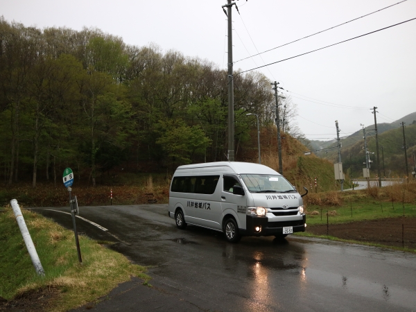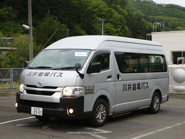 乗車したのはハイエース。車両は川内から直通していました。平均乗車人数で小型化したせいで、年金日などは乗り切れない場合もあるとか。運賃は均一100円ですが路線ごとではなく、車両が直通運行し続ける限りを1乗車とカウントするため、川井→川井で100円でした。