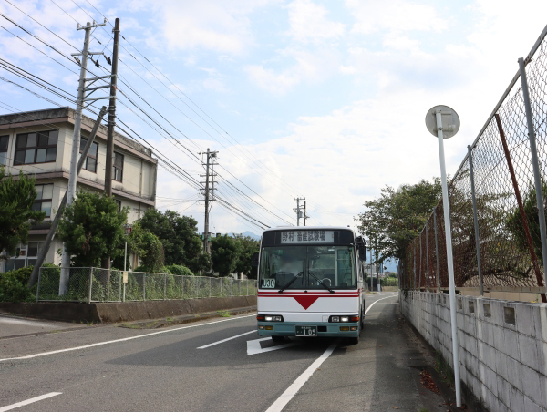 野村高校前のバス停は上辰の口方面のルート上にありますが、校舎へはこちらが至近です。