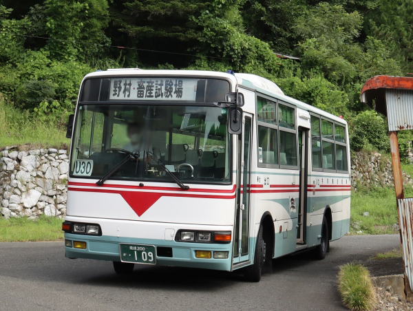畜産研究センターと野村高校。畜産研究センターは十夜野寄りに畜舎がありました。通学の便を図っているようですが、白髭線の場合は高校生の利用は皆無に近いとのこと。逆に手前の権現からは中学生が乗車するそうです。