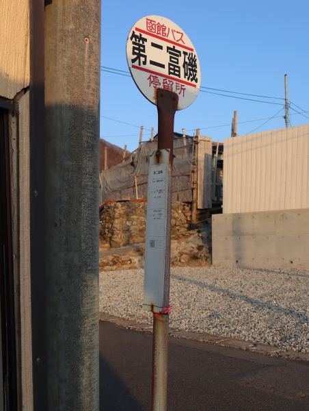 以前はこの先太田まで路線があり、桧山海岸線のバスが運行されていました。2020年の廃止後も第二富磯発着の久遠線の1往復のみが残っています。